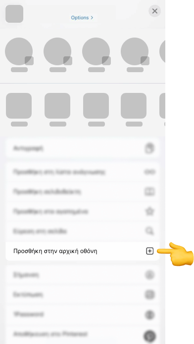 3. Στο ανοιχτό μενού μετακινηθείτε προς τα κάτω, βρείτε το κουμπί Προσθήκη στην αρχική οθόνη και πατήστε το.